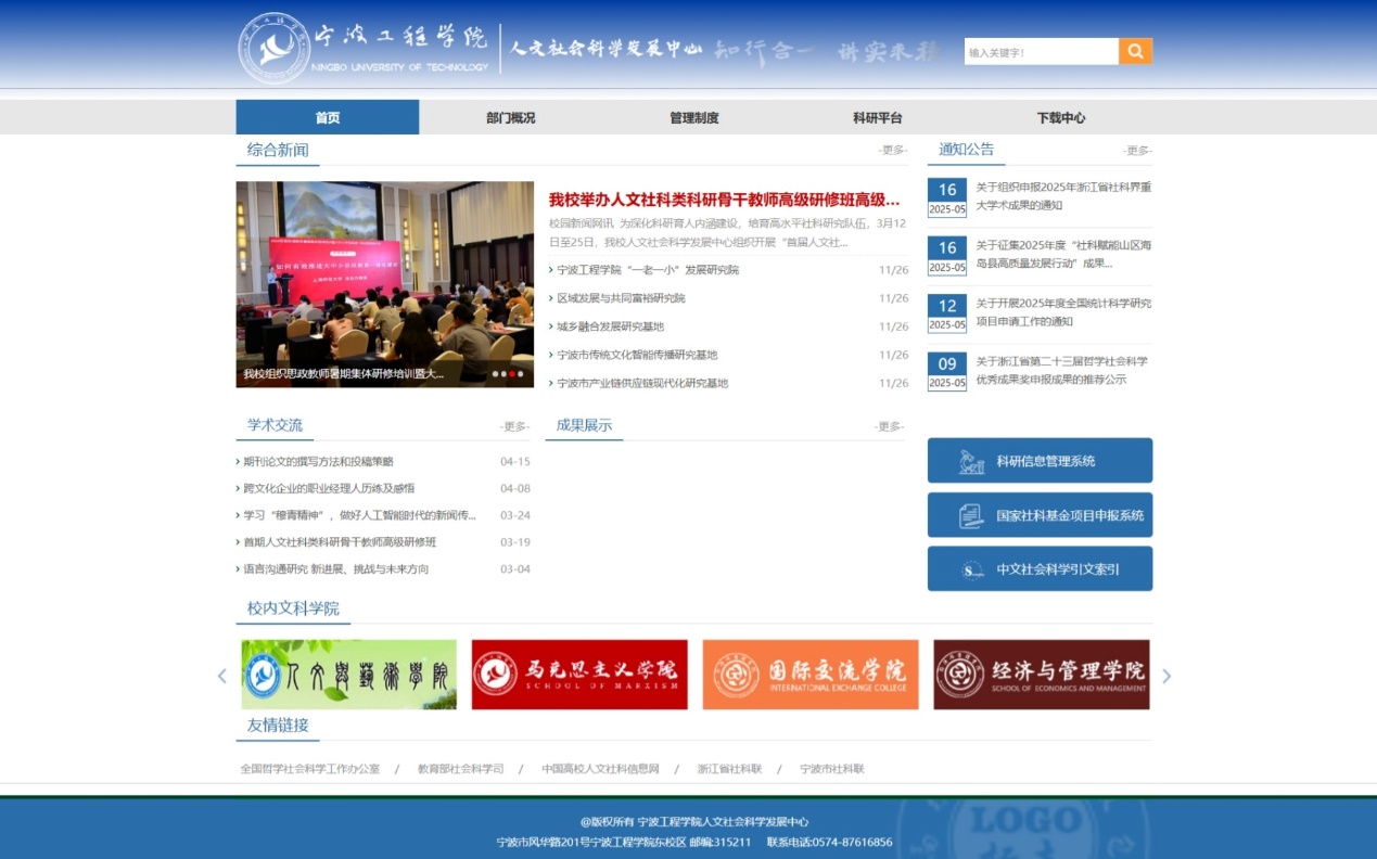 宁波工程学院人文社会科学发展中心网站全新建设完成,今日正式发布,网址为