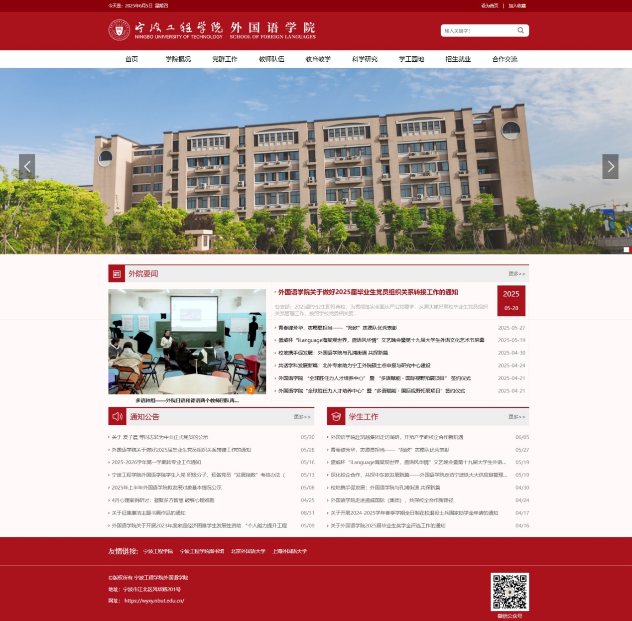 宁波工程学院外国语学院网站全新建设完成,今日正式发布,网址为