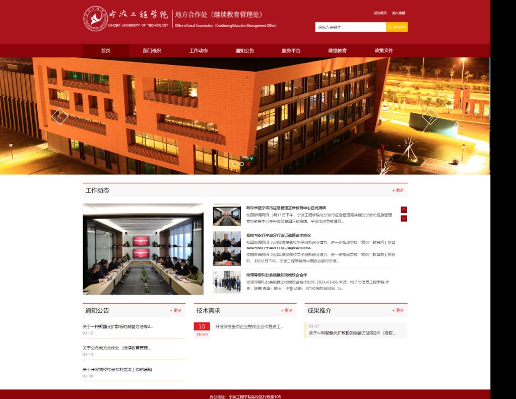 宁波工程学院地方合作处(继续教育处)网站网址为