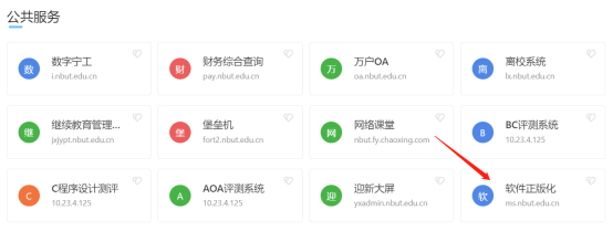 2、校园网内也可直接访问http://ms.nbut.edu.cn登录“宁波工程学院软件正版化平台”下载正版软件。