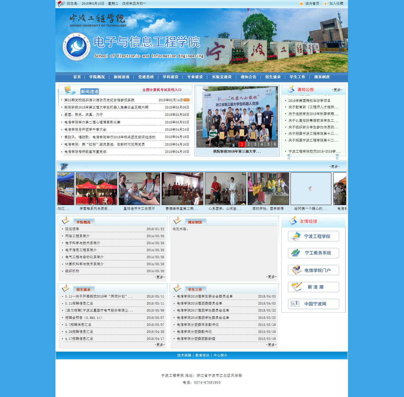 电信学院网站网址为http://dx.nbut.edu.cn。近日迁入站群平台,全新发布,欢迎全校师生访问并推广。