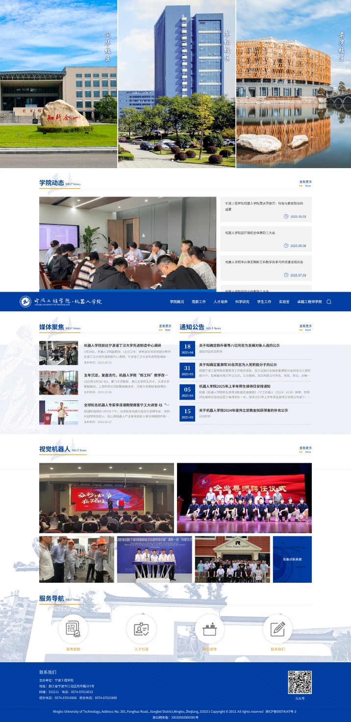 宁波工程学院机器人学院网站全新建设完成,今日正式发布,网址为