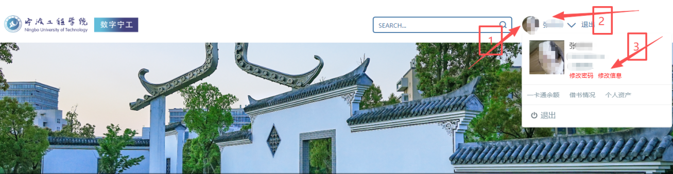 登录数字宁工平台后,在平台主页右上角,点击您的姓名或个人头像。在下拉菜单中选择“修改信息”。