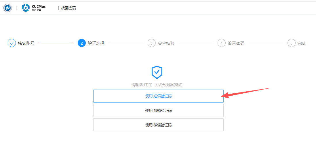 在选择验证方式页面选择“使用短信验证码”。使用邮箱验证码方式仍在开发中,使用微信验证码方式适合手机端操作。