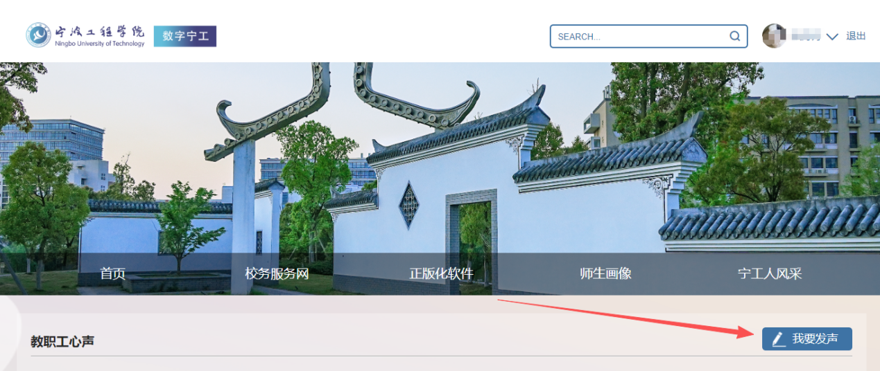 ①打开数字宁工的主页。找到“教职工心声”栏目(数字宁工主页左上角),点击“详情”链接。