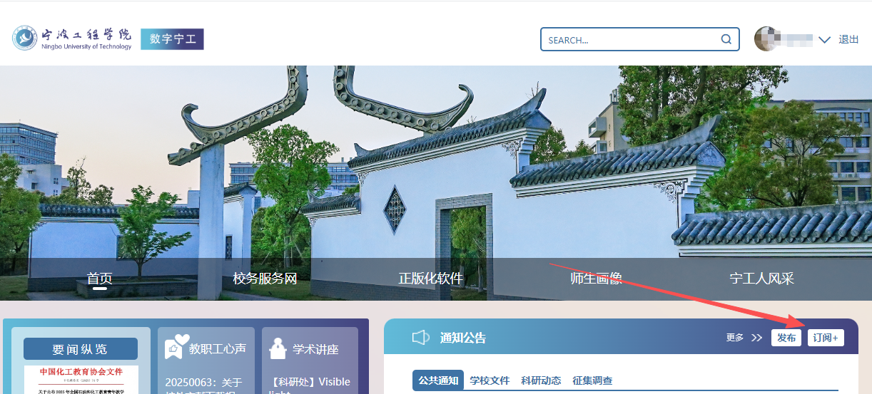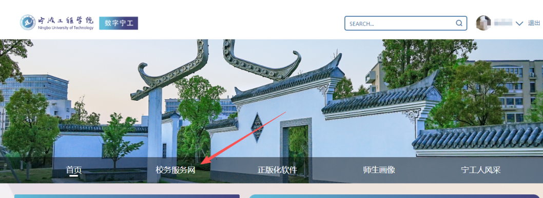 ①打开数字宁工的主页,点击进入“校务服务网”。